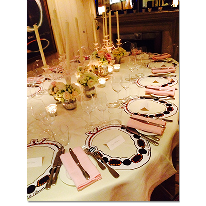 Daisy designed a set of table accessories inspired by Kate Spade's necklaces for a celebratory dinner hosted by Kate Spade President and Chief Creative Officer Deborah Lloyd at The George, Mayfair, London.