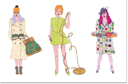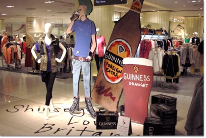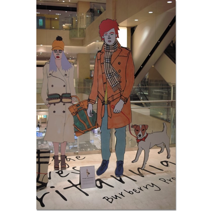 Ten eclectic characters, and supporting graphics, represent contemporary London and the British brands that Shinsegae sell. The drawings have been blown up to life-size and dotted around the store.