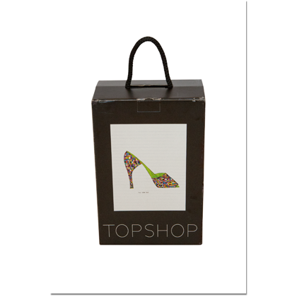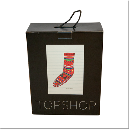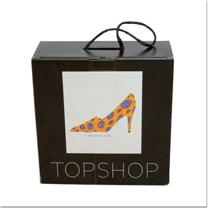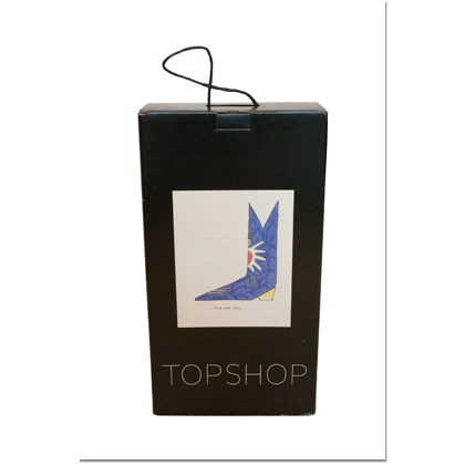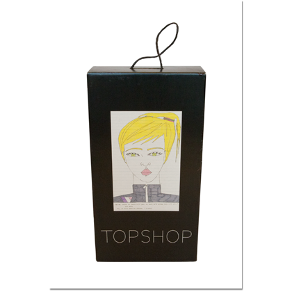 'Daisy de Villeneuve for Topshop' range of household products, beach accessories, Tote bags and knickers. Shoeboxes, window displays and instore visuals.